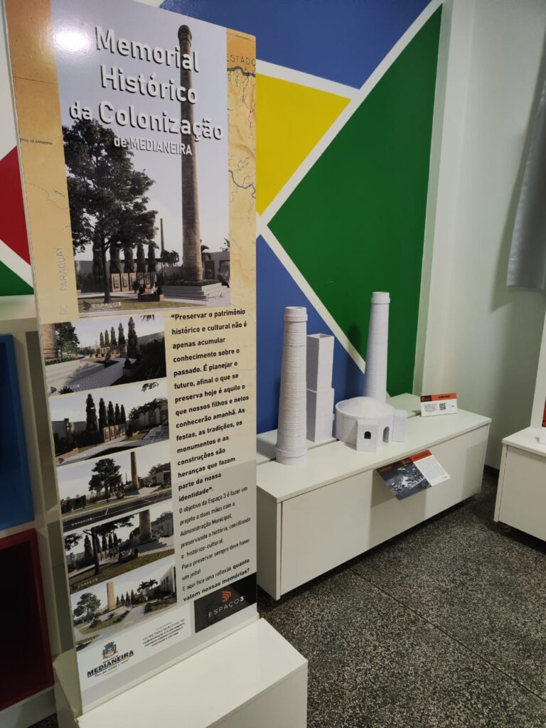 A Prefeitura de Medianeira, através da Casa da Memória Roberto Antonio Marin, firmou uma parceria histórica, cultural e educativa com o Colégio Bertoni Elos, que recebeu, na manhã de hoje (07), a exposição itinerante “ORIGEM: Raízes históricas da colonização de Medianeira”. O evento integra as 65 ações que fazem parte da programação de aniversário do município.